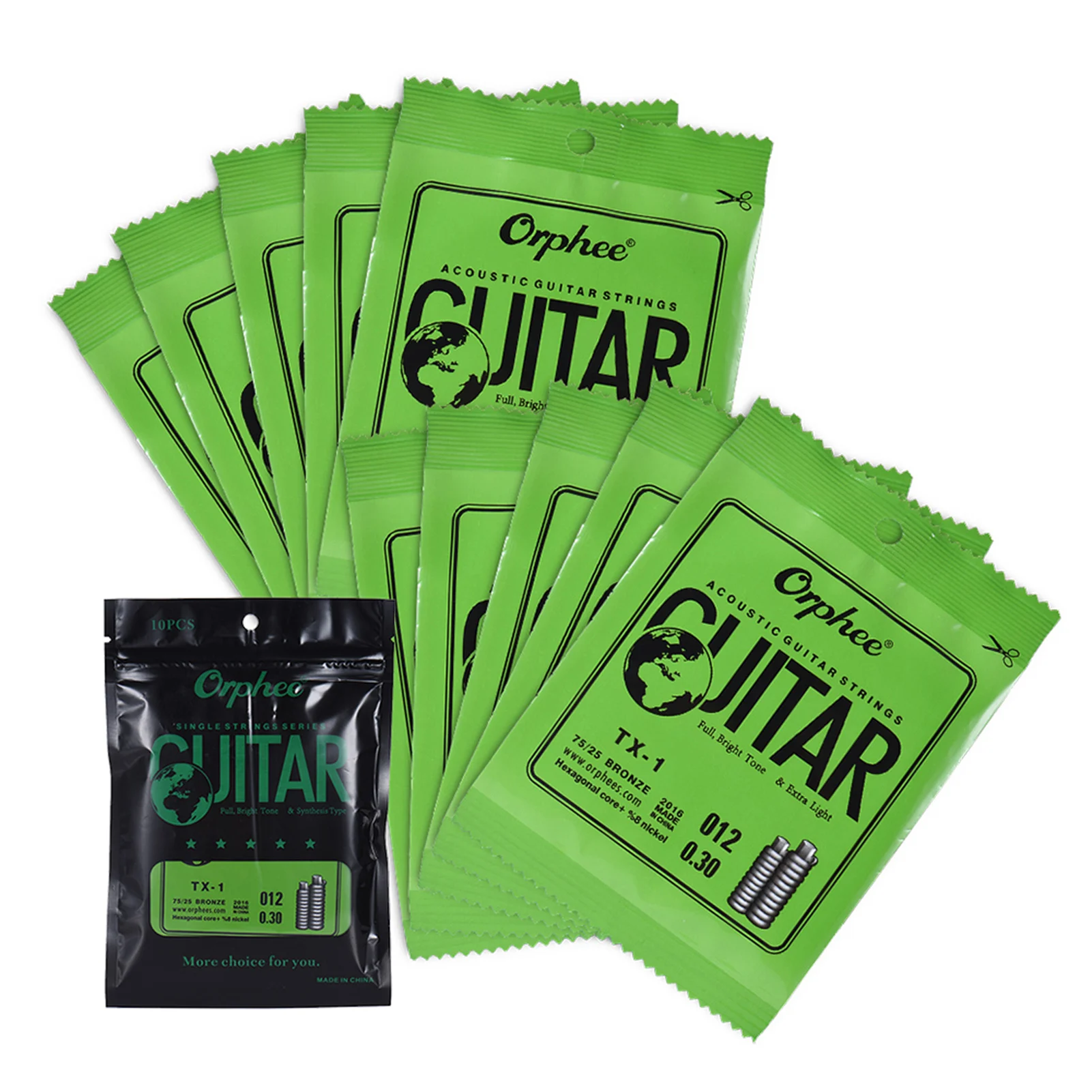 Orphee TX-1 Single String Replacement for Acoustic Folk Guitar 1st E-String (.010) 10-Pack High-carbon Steel Core 75/25 Phosphor  Read more