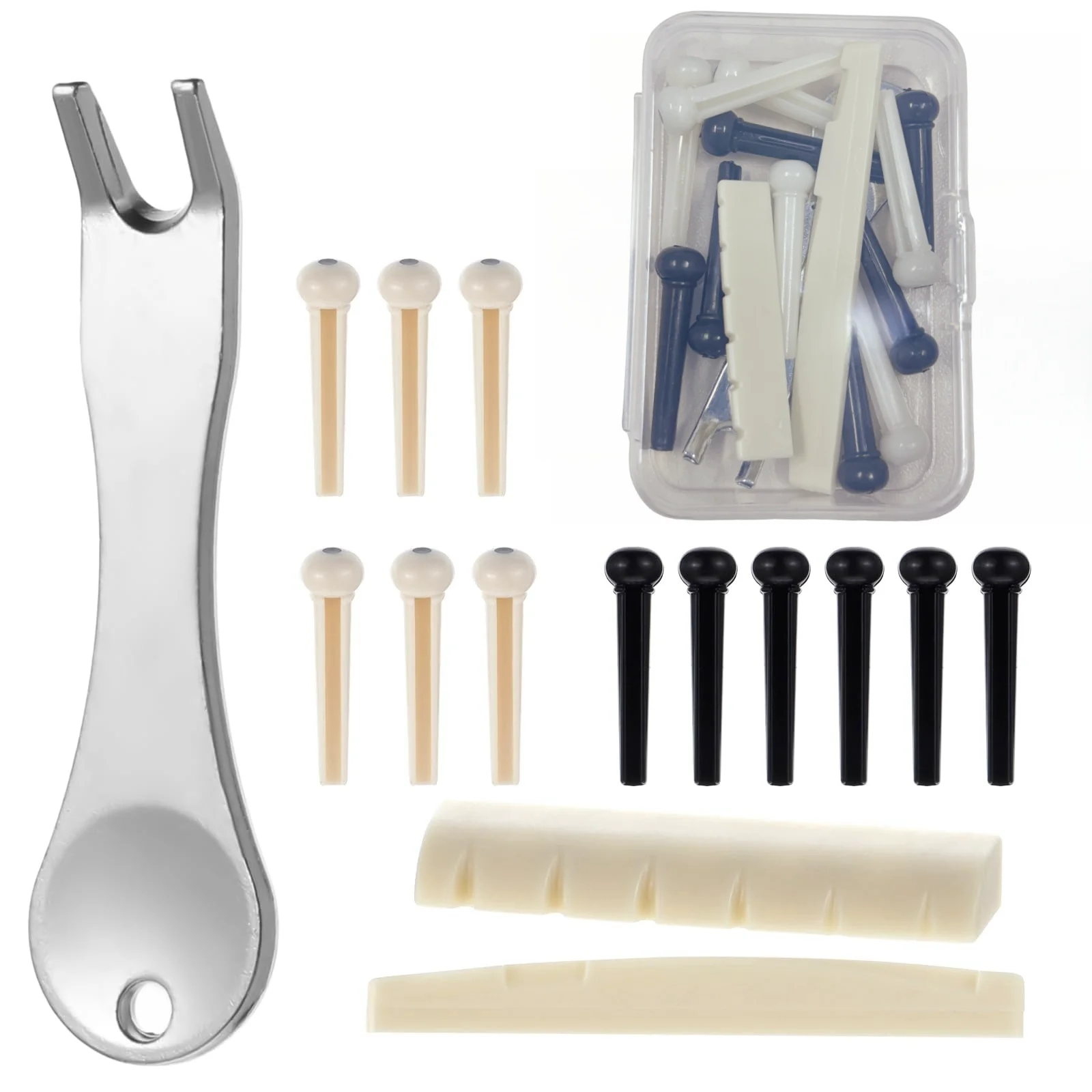 12 Pcs Acoustic Guitar Bridge Pins with Bridge Pin Puller Remover & Guitar Bridge Saddle Nut, Replacement Parts and Accessories