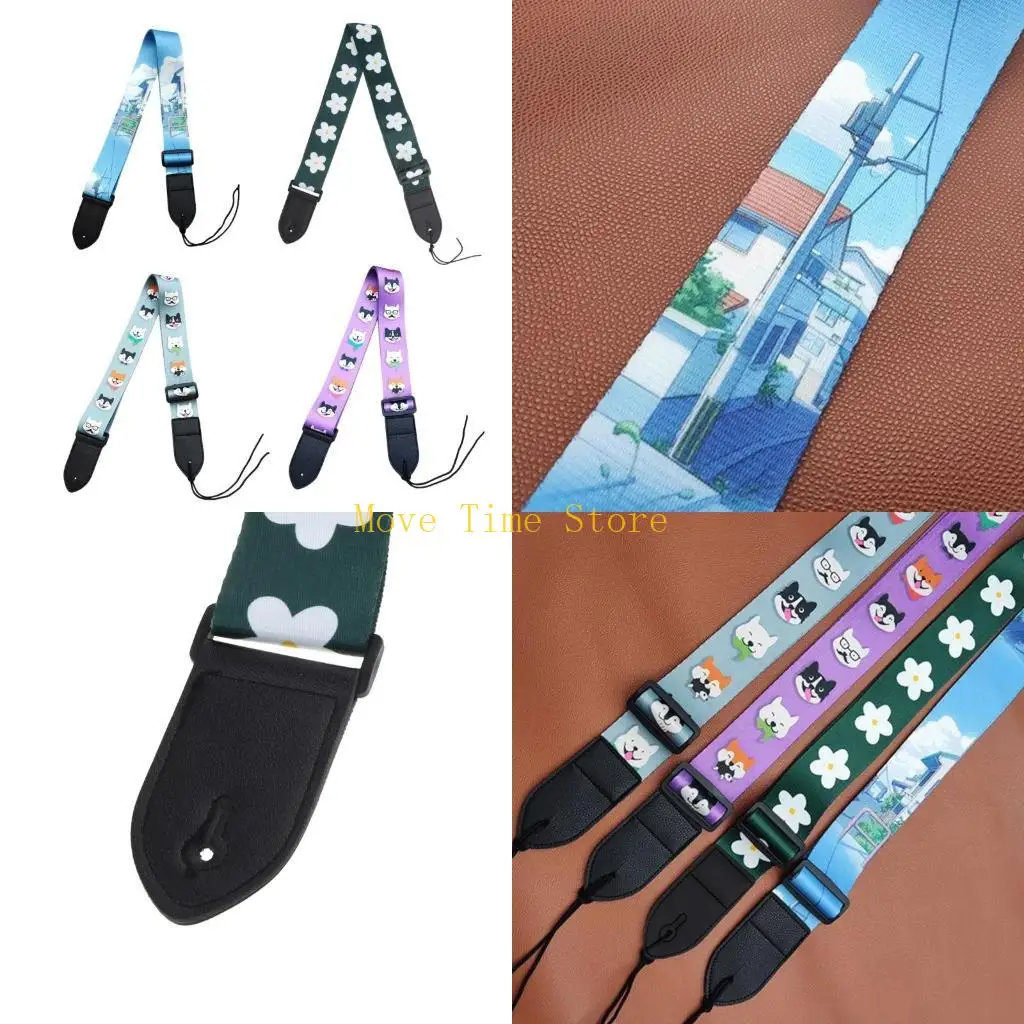92ME Printed Guitar Strap Adjustable Guitar Shoulder Belt Adult Kids Guitar Shoulder Strap for Bass Ukulele Electric Guitars