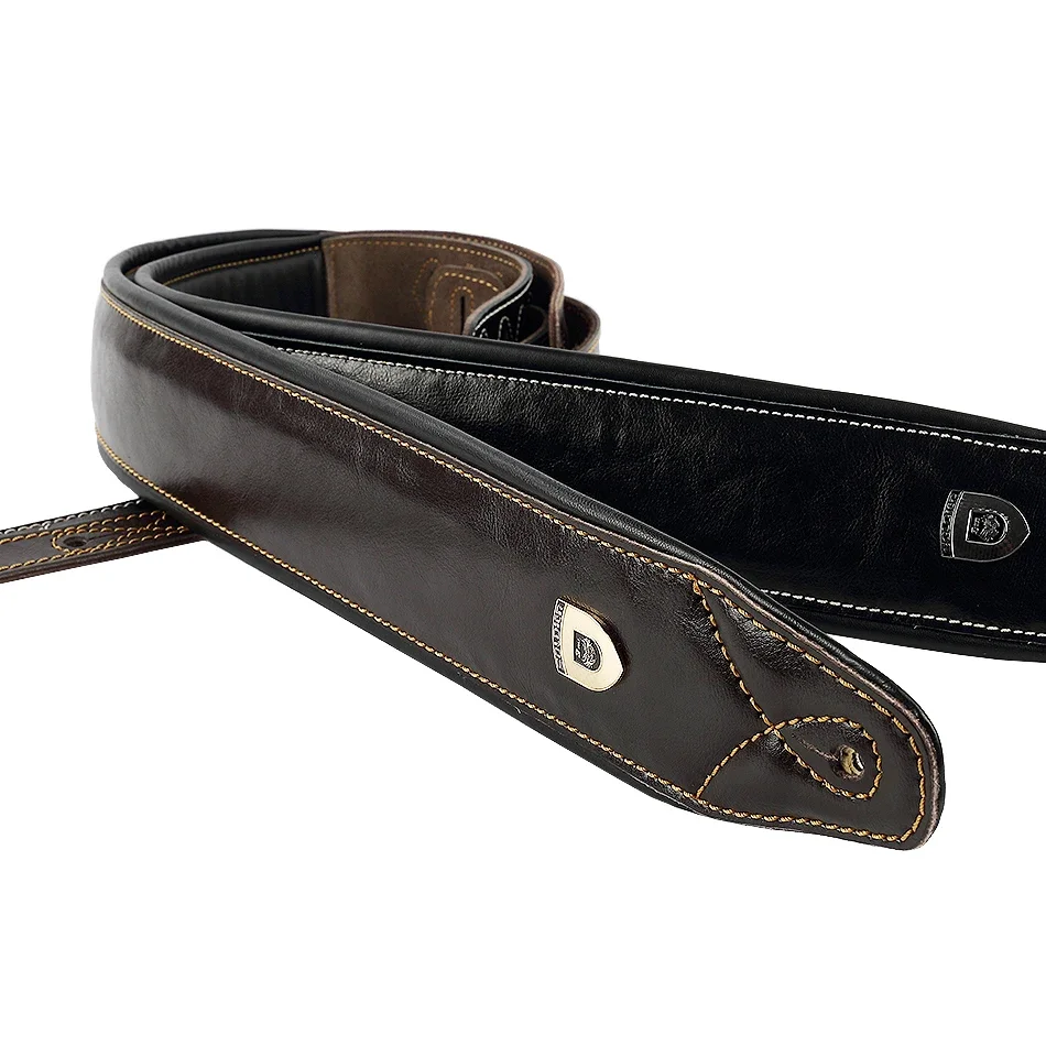 Soldier High Quality Genuine Leather Real Cowhide Guitar Strap for Electric Bass Guitar Adjustable Padded Belt Black Browm Color