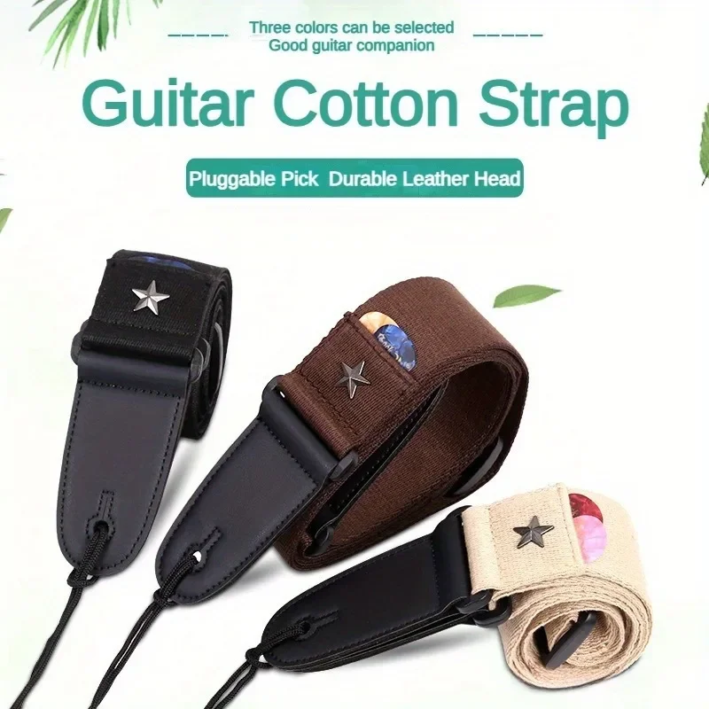 Guitar Strap Classical Guitar Electric Guitar Bass Universal Strap Leather Head Long Durable Strap With Pattern