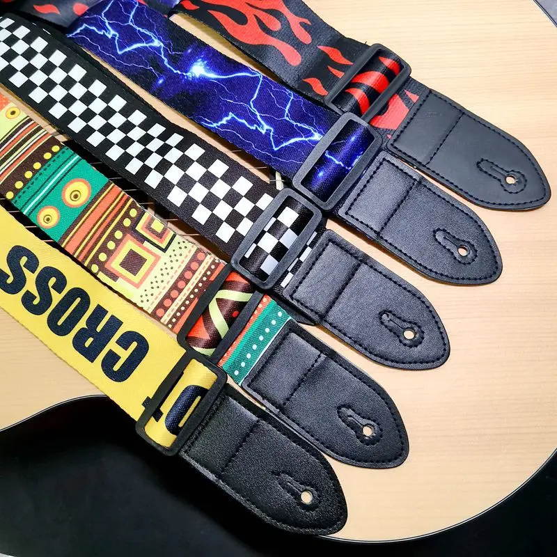 Bohemian Style Guitar Strap Soft Leather End Adjustable Acoustic Electric Bass Strap Guitar Belt