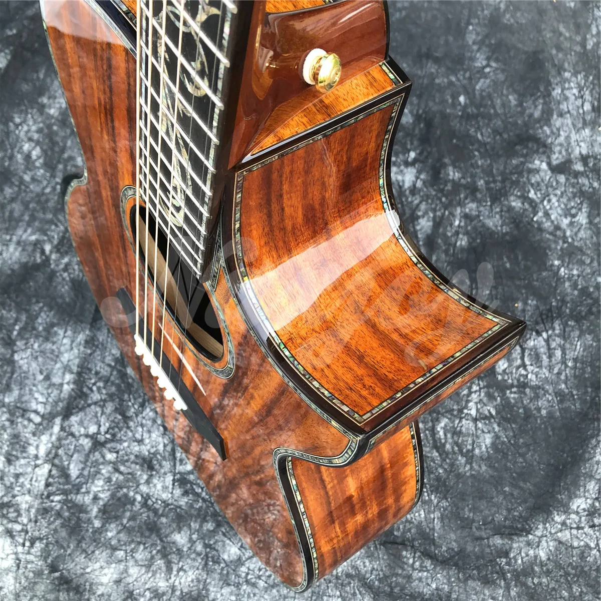 All Koa Wood PS14 Acoustic Guitar 41 Inches Cutaway Abalone Inlay Ebony Fingrerboard Guitarra