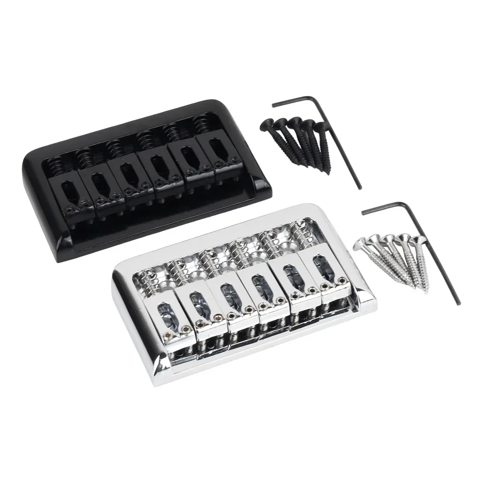 Gearlly 52.5mm Fixed Hardtail Bridge Non-tremolo Electric Guitar Bridge for 6 String for Electric Guitar Accessory, Chrome/Black