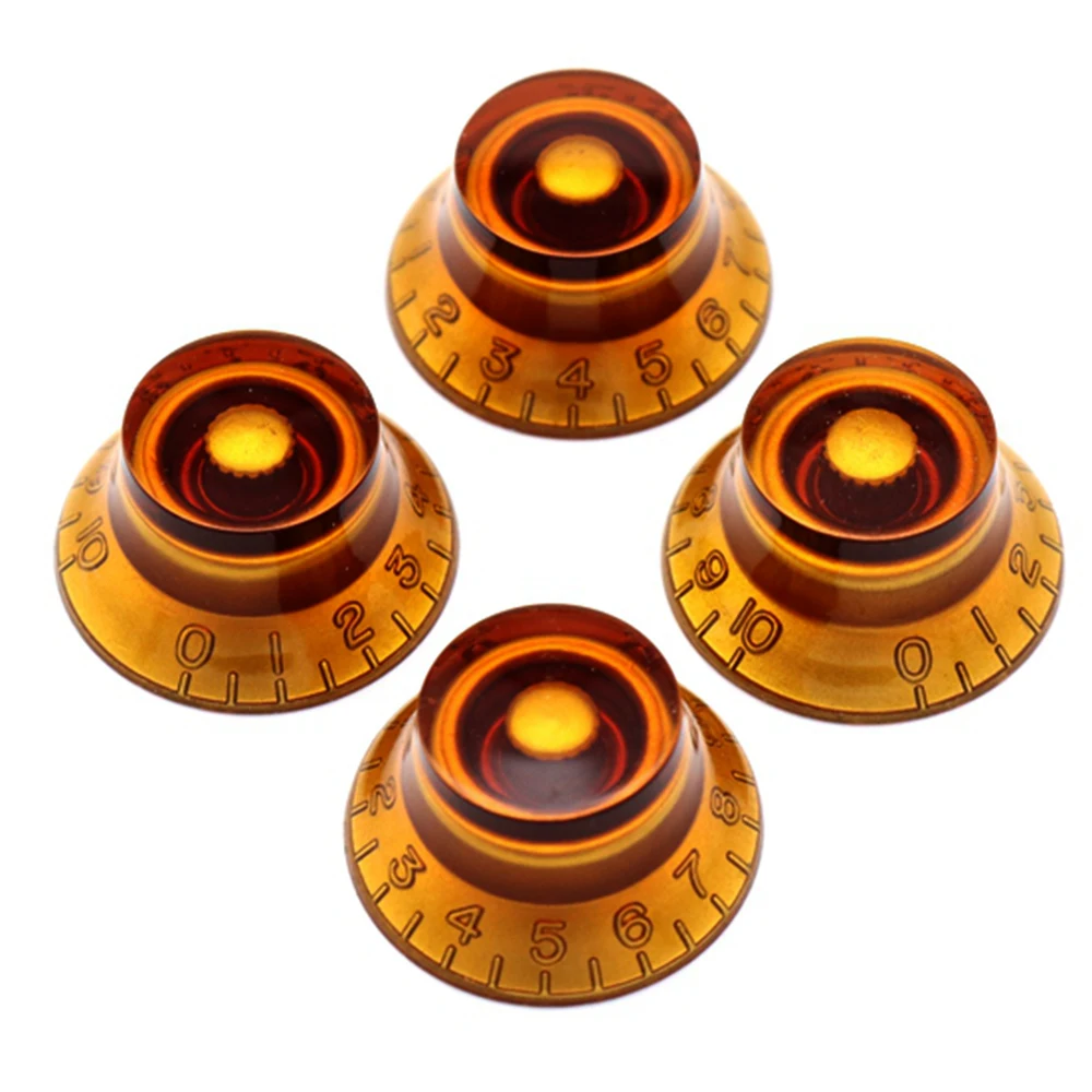 4pcs High Grade Guitar Bass Knobs Amber Bell Top Hat Speed Volume Tone Knob for EPI LP Electric Guitar Bass