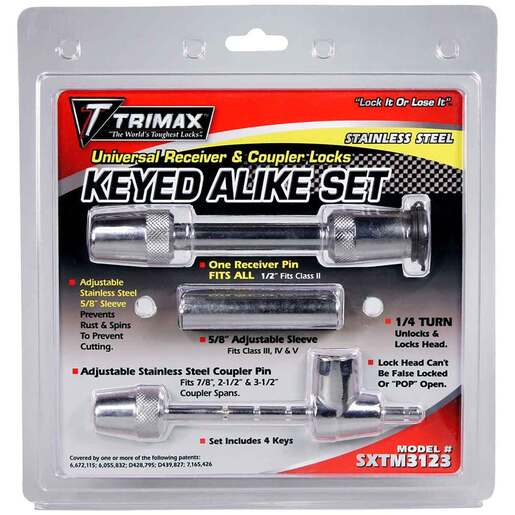 Trimax Stainless Steel Universal Keyed Alike Receivers and Coupler Lock Set - Silver