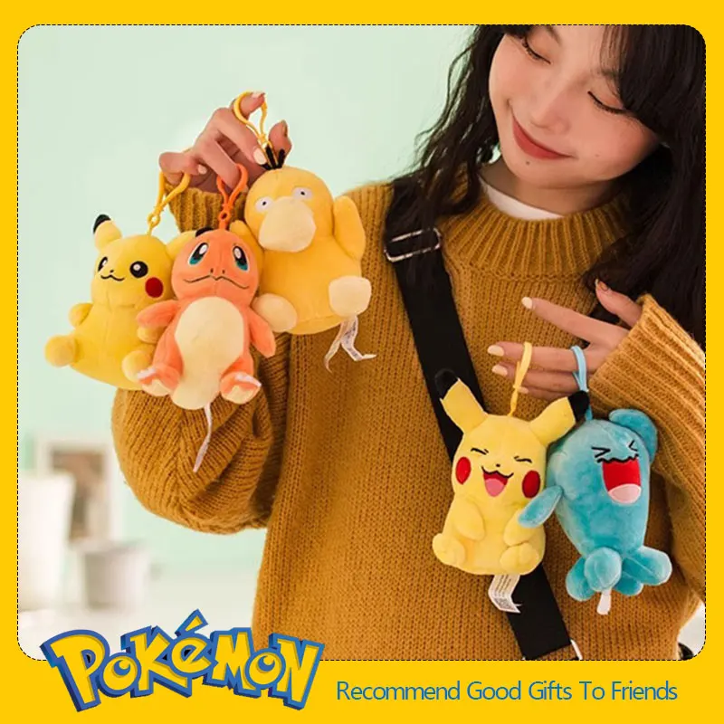 Anime Pokemon Kawaii Pikachu Keychain Eevee Mew Bulbasaur Charmander Snorlax Psyduck Stuffed Toy Cute Plush Keyring Doll Pendant