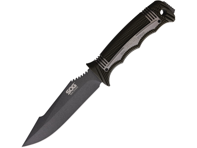 SOG Specialty Knives & Tools SEAL Strike Fixed Blade Knives 4.9in AUS-8 Plain Black Clip Point Blade Black GRN Handle w/ Stainless Onlay Molded Sheath