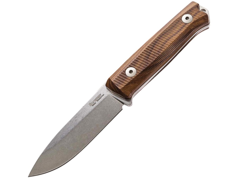 Lionsteel Bushcraft B40 Olive Wood Fixed Blade Knife 8.88in Overall 3.88in Stonewash Sleipner Tool Steel Blade Olive Wood Handle Brown Leather Belt