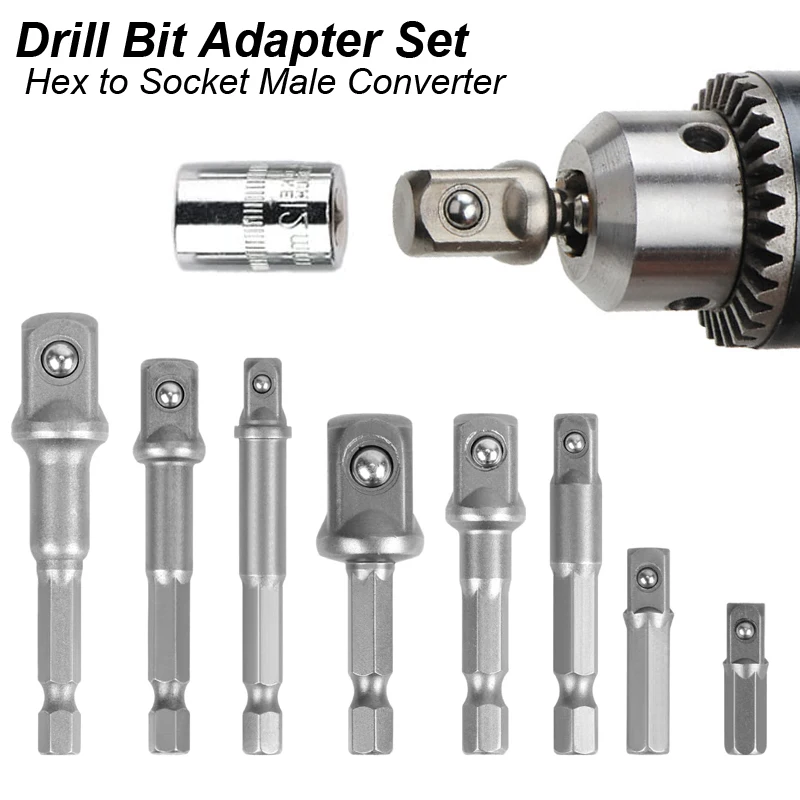 Wrench Sleeve Power Drill Socket Adapter Bits Hex Drill Nut Driver Shank 1/4 3/8 1/2 Connecting Rod Head Extension Drill Bits