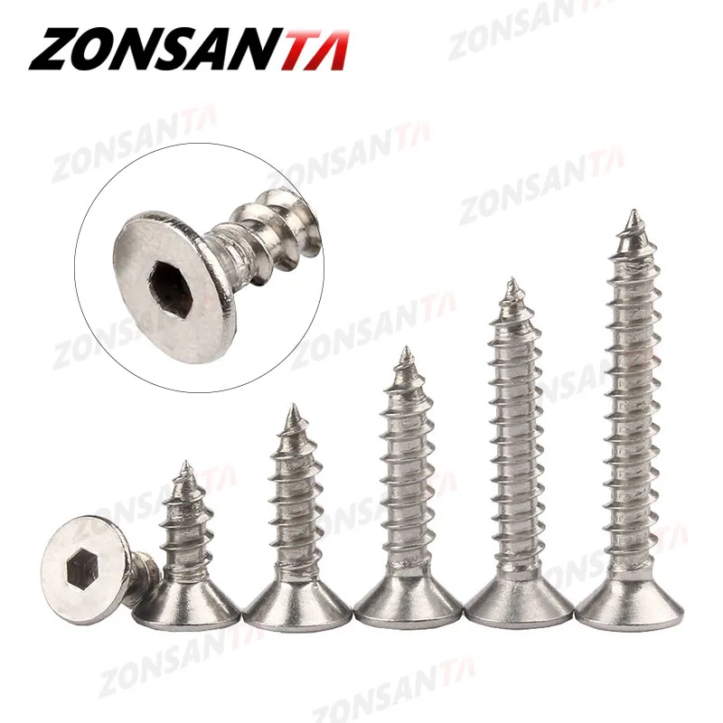 ZONSANTA M3 M4 M5 Countersunk head hexagon socket tapping screw 304 Stainless steel Flat Allen head wood screw
