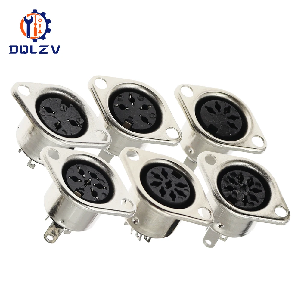 Metal 3 4 5 6 7 8 Pin DIN Female Socket Hulled Panel Mount Chassis Connector Soldering Iron