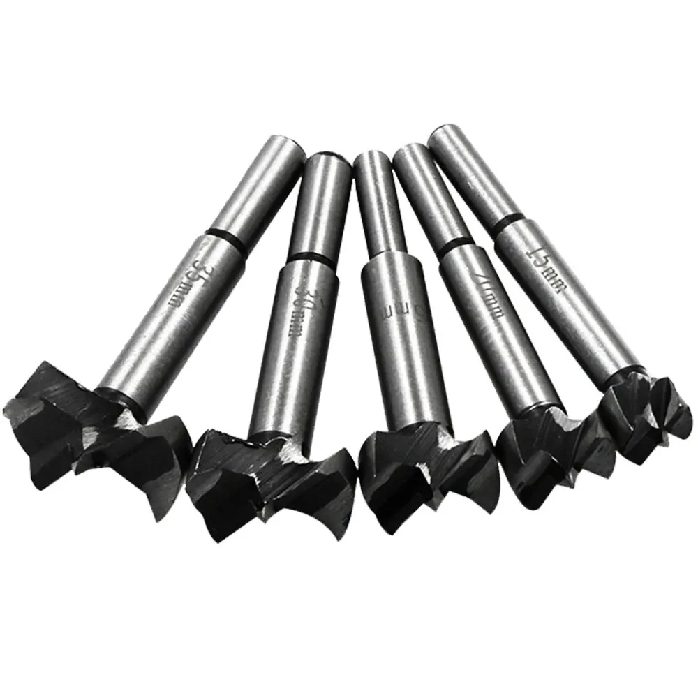 5pc Woodworking Flat Wing Drilling and Reaming Hinge Drill Bit 15-35mm Drilling Bit Hole Opener Cutting Tool Set