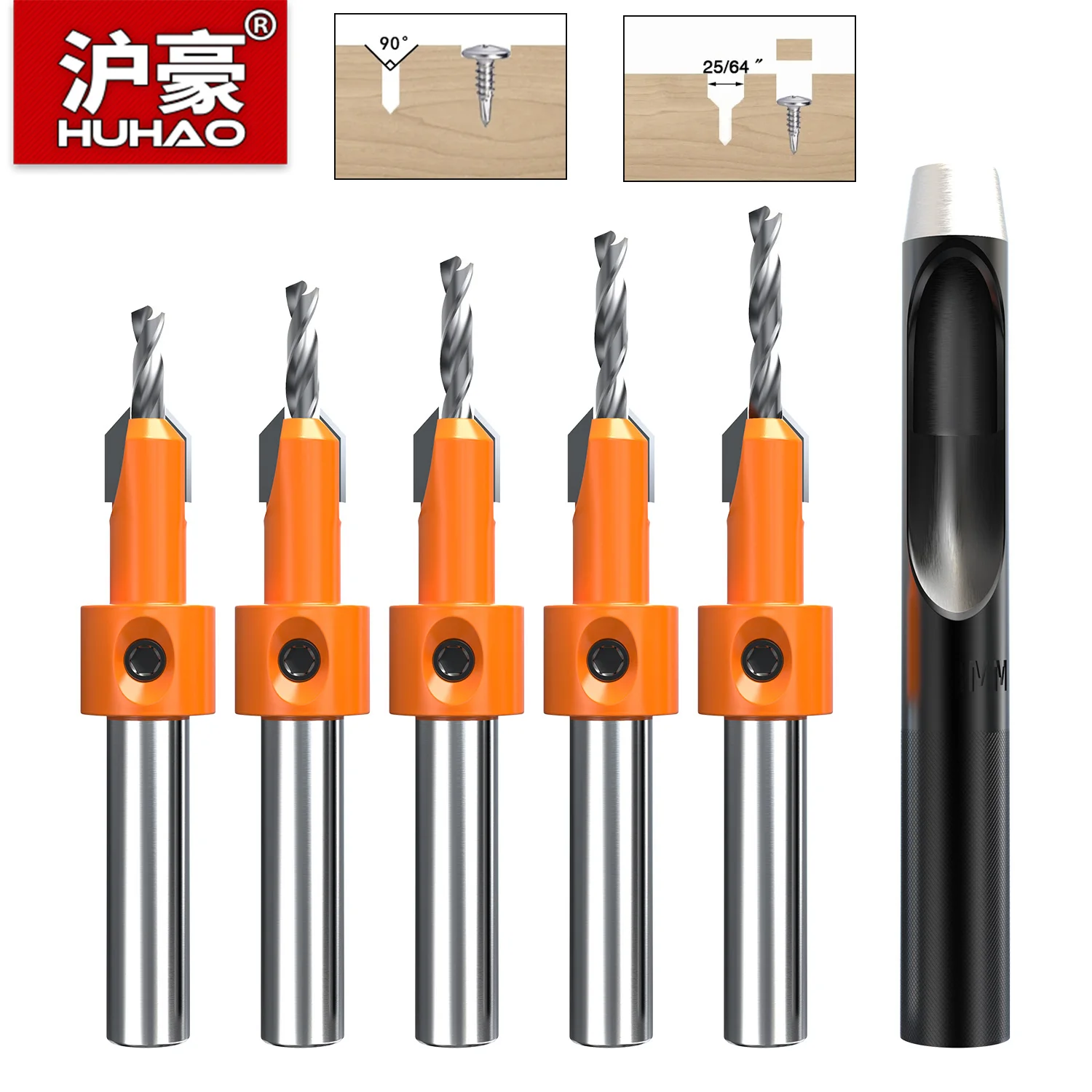 HUHAO 1/5PCS Counter sink Drill Bit Set for Wood 8mm Shank HSS Wood Screw Drill Router Bits Hole Punch Woodworking Tools