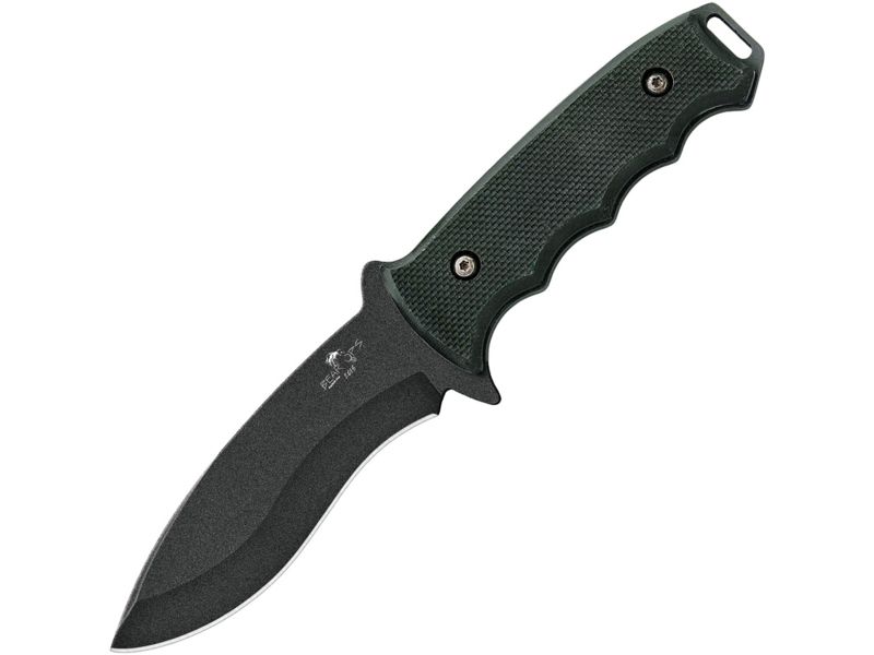 Bear Ops Constant Fixed Blade Black Fixed Blade Knife 4.25in 1095 Carbon Steel Standard Edge Drop Point Black G10 Handle CC200B4B