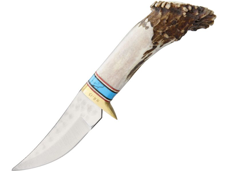 Ken Richardson Knives Small Hunter Turquoise Fixed Blade Knife 3in Antler Handle KR1403TSMHT