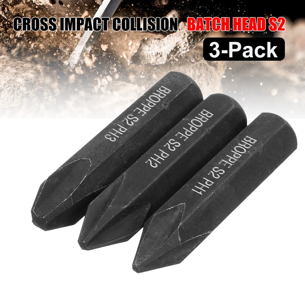 3Pcs Screwdriver Bit Set For Heavy Duty Impact Driver Set 8mm Hex Shank Cross Phillips Electric Magnetic Screwdriver Bit Set