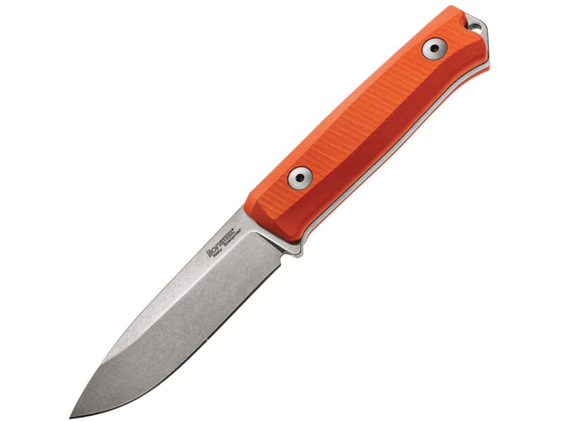 Lionsteel Bushcraft B40 Orange Fixed Blade Knife 8.88in Overall 3.88in Stonewash Sleipner Tool Steel Orange G10 Handle Back Flat Tang Can Be Used For