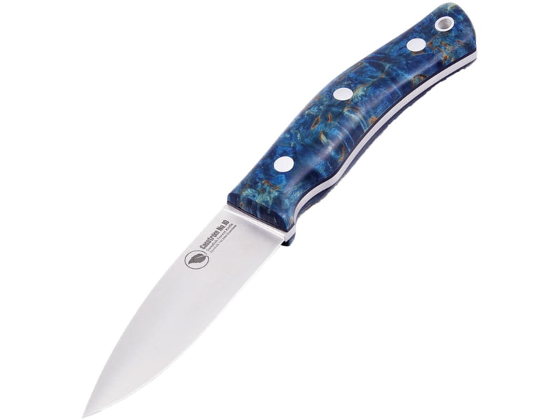 Casstrom No 10 SFK Blue Blue/SS/Flat Knife 8.75in Overall 4in Satin 14C28N Sandvik SS Drop Point Blue Birch Wood Handle Black Leather Sheath KS13119
