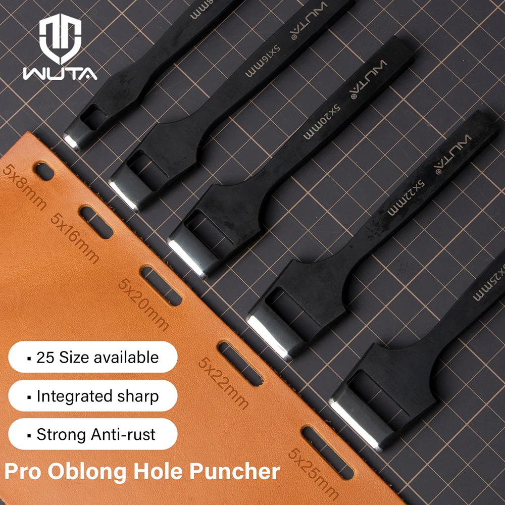 WUTA Leather Belt Hole Puncher Flat Hollow Punches Oblong Punching Tools Strap Watch Band Heavy Duty Oval Hole DIY Leather Craft