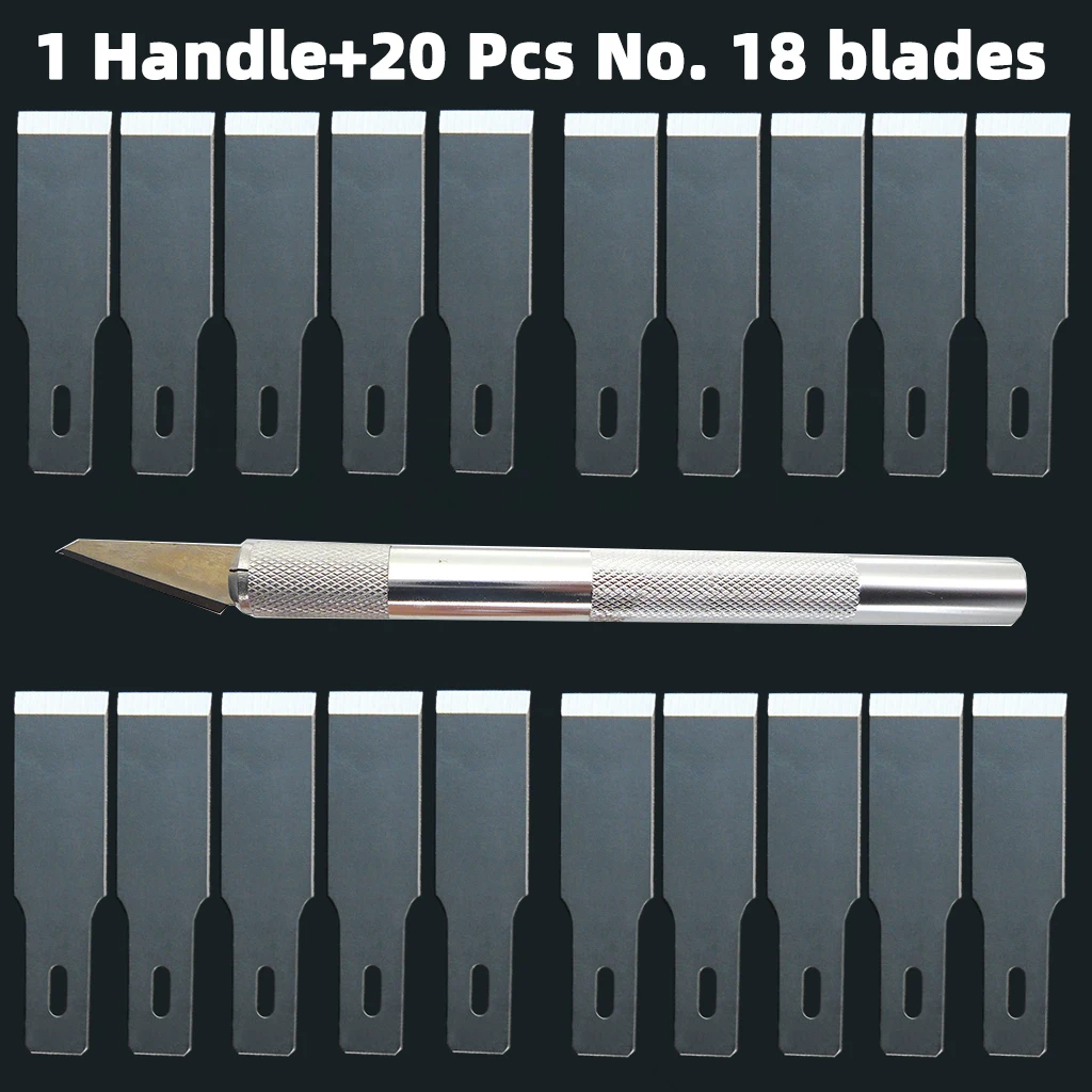 NO.18 Flat Head Carving Knife Set, Self-adhesive Cleaning Scraper, Glue Removal Scraper, Including 20 Blades and 1 Handle