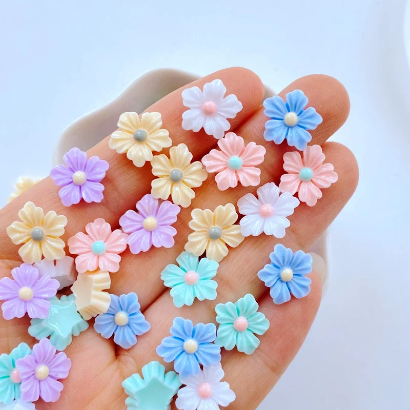 50Pcs New Cute Resin 11mm Mini Flower Series Flat Back Fit Phone Deco Parts Embellishments for Hair Bows Accessories