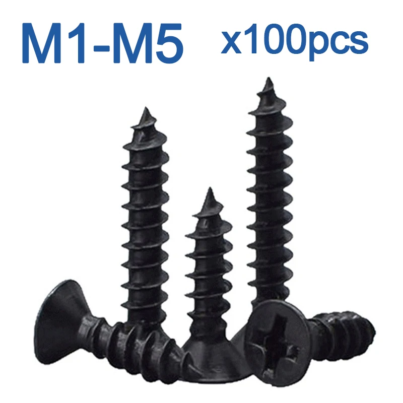 100pcs/lot Cross Countersunk Flat Head Self-tapping Screw M1 M1.2 M1.4 M1.5 M2 M2.6 M3 M3.5 M4 M5 Black Carbon Steel Phillips