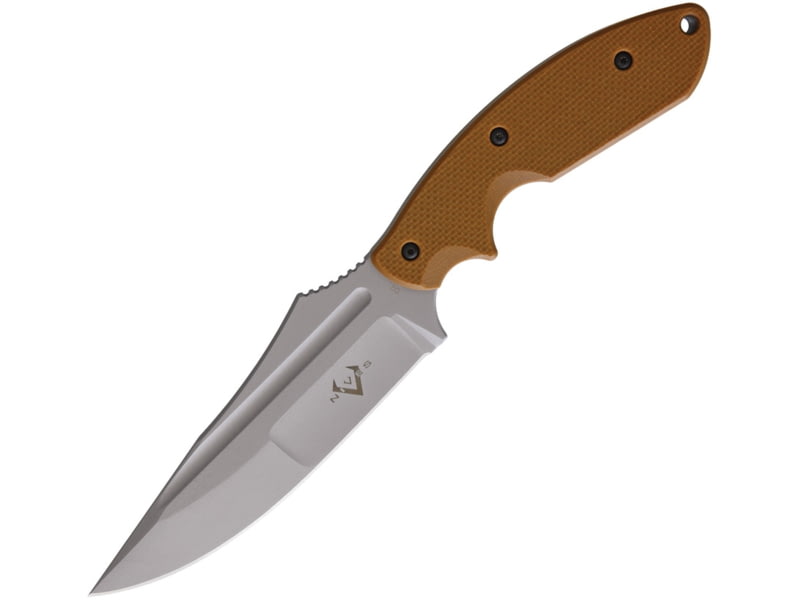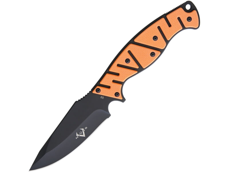 V NIVES Alte Beast Orange Fixed Blade Knife 10in Overall 4.5in Black D2 Tool Steel Drop Point Orange G10 Handle Black Kydex Sheath Storage Case.. 4.5" gray finish D2 tool steel drop point blade. Coyote brown G10 handle. Full extended tang. Lanyard...  Read more