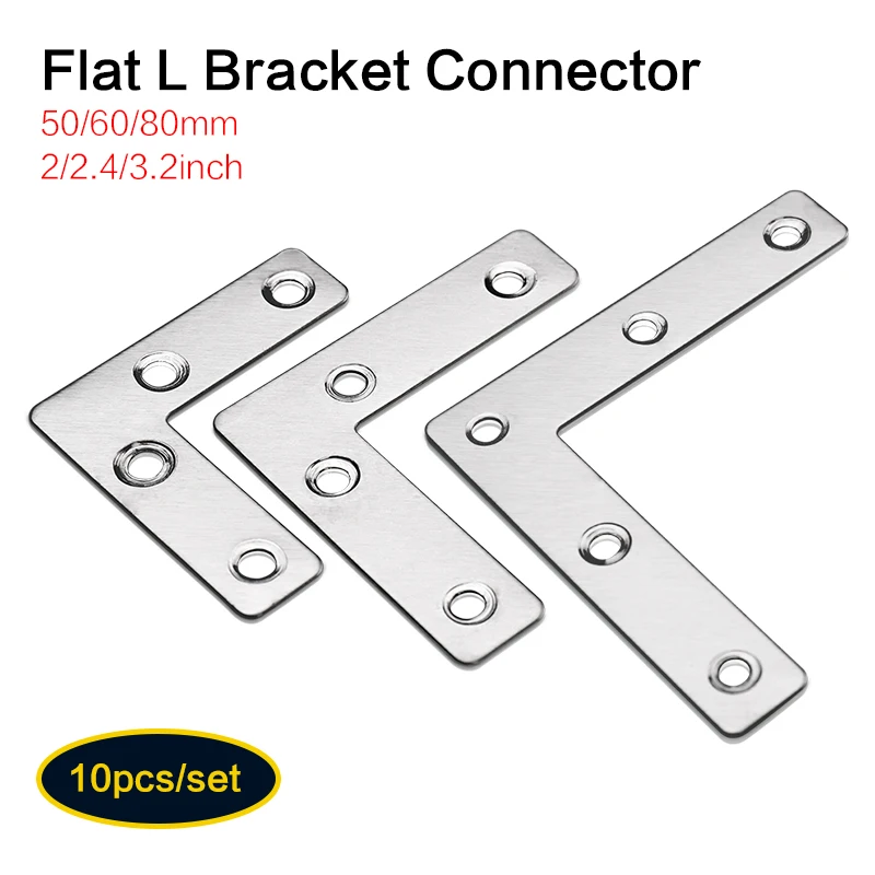 2/4/10pcs Flat Metal Brace Bracket Stainless Steel L Shaped Corner Brackets 90 Degree Right Angle Connectors for Wood Furniture