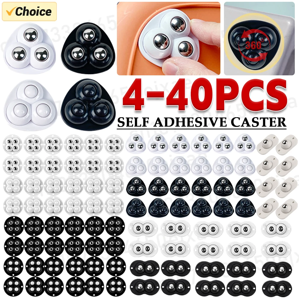 4-40pcs For Furniture Stainless Steel 360 Degree Roller Self Adhesive Furniture Caster Home Strong Load-bearing Universal Wheel
