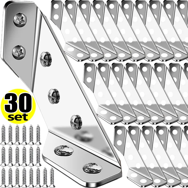 4/10/30pcs Corner Brackets Stainless Steel Furniture Angle Shelf Connector Cabinet Support Fixing Frame Corner Brace With Screws  Read more