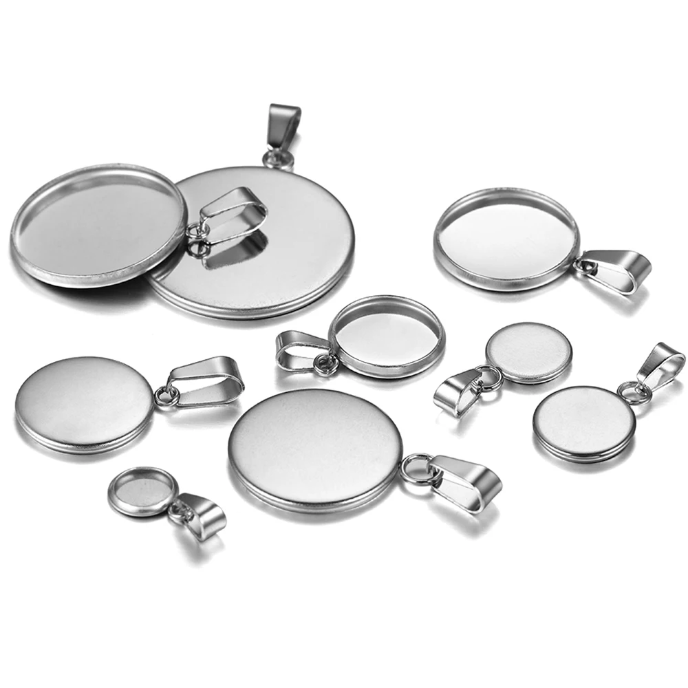 10Pcs/Lot Stainless Steel Cabochon 6-25mm Round Tray Blank with Clasp for DIY Resin Pendant Base Setting Jewelry Making Supplies