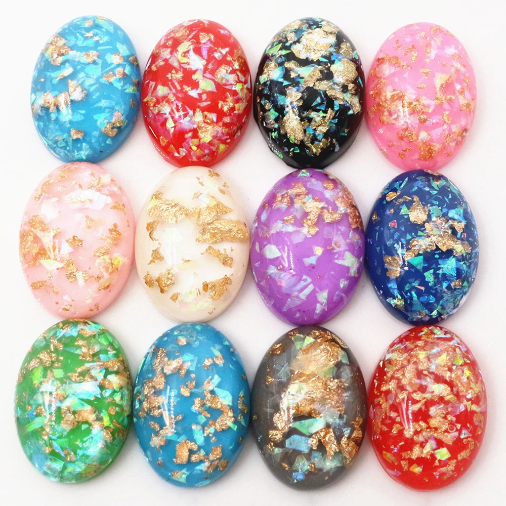 18x25mm 10pcs/Lot New Fashion Mix Color Built-in metal foil Flat back Resin Cabochons Cameo