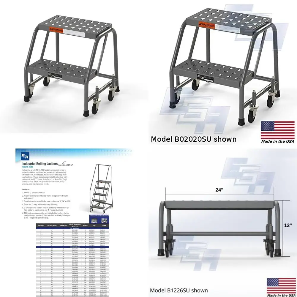 American-Made 2-Step Rolling Stool Ladder, Model B2020SU, 20-Inch Top Step, OSHA Approved, 16-Inch Wide Perforated Treads