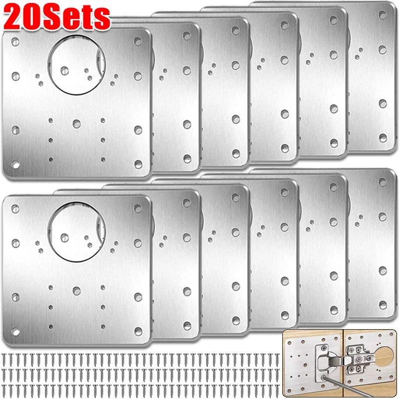 Cabinet Door Hinge Repair Plate Kit Stainless Steel Furniture Wardrobe Hinge Mounting Plate with Screw Flat Fixing Bracket Tools