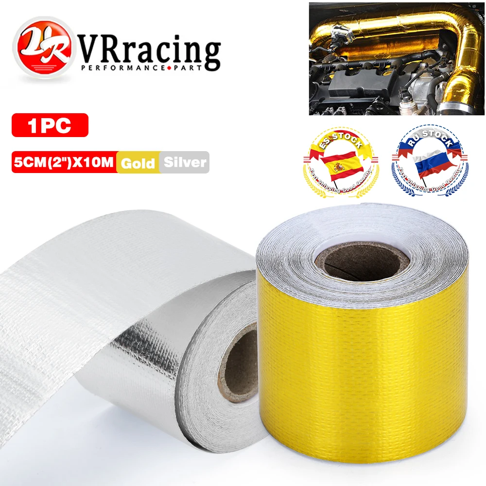 A Gold 2'' Thermal exhaust Tape Air Intake Heat Insulation Shield Wrap Reflective Heat Barrier Self Adhesive Engine 2 Inch 5/10M