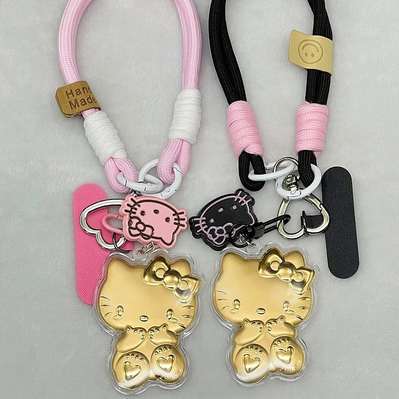 Sanrio Hello Kitty Phone Lanyard-Dual Hook E79 Pink Charm Cute Lanyard Gift-Pink Rotating Phone Charm for Girls Birthday Present