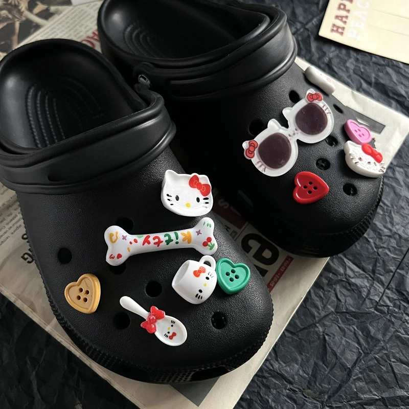 New Summer Sungalsses Hello Kitty Shoe Charm For ABS Waterproof Sandals Decorate Buckle Decorations Accessories Toys Gift