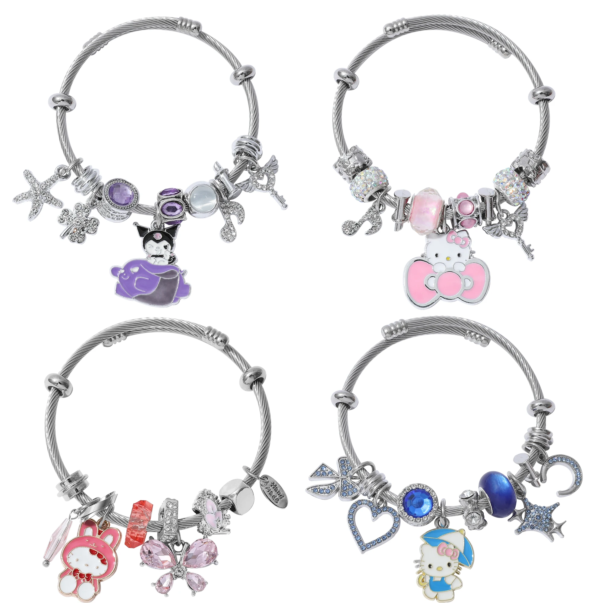 Cute Cartoon Hello Kitty Kuromi Zircon Rhinestone Metal Pendant Bead Bracelet Sweet Fashion Charm Girl Jewelry Gift