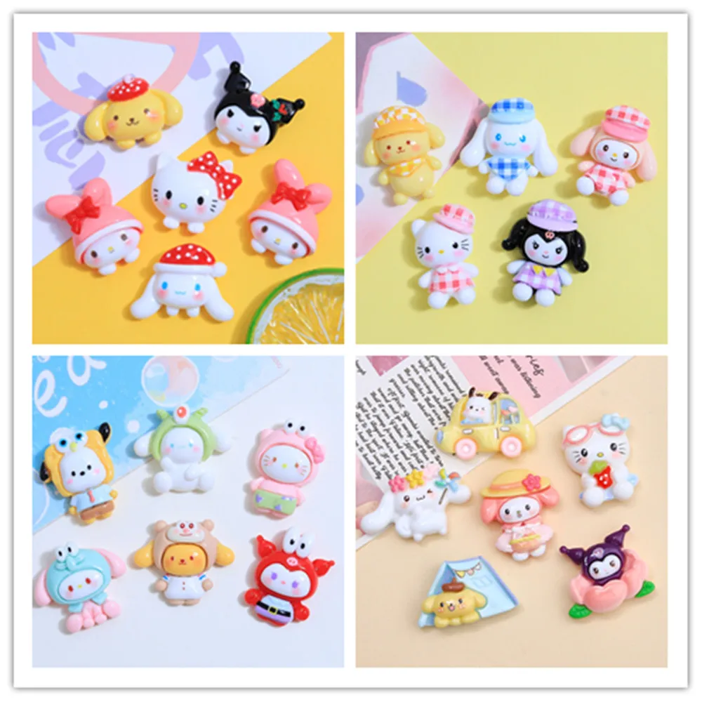 100pcs Resin Cartoon Melody Hello Kitty Head Sanrio DIY Flatback Cabochon Crafts Charm for Scrapbooking Embellishment Accessory
