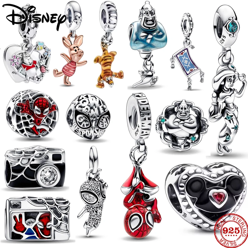 Miniso Disney 925 Silver Mickey Love Heart Winnie Tigger DIY Pendant Bead Dangle Charm Fit Original Pendants Bracelet For Women