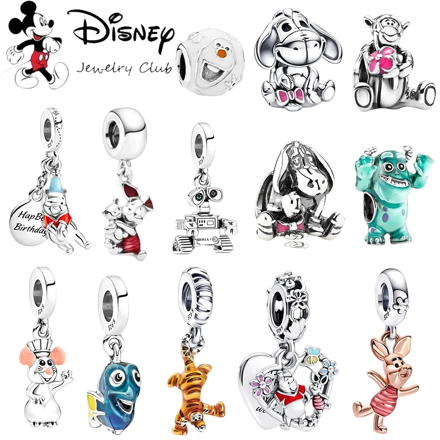 Miniso Disney 925 Sterling Silver Charm Fit Original Princess Stitch Olaf Mickey Donald Duck Tigger Bracelet Charm Beads