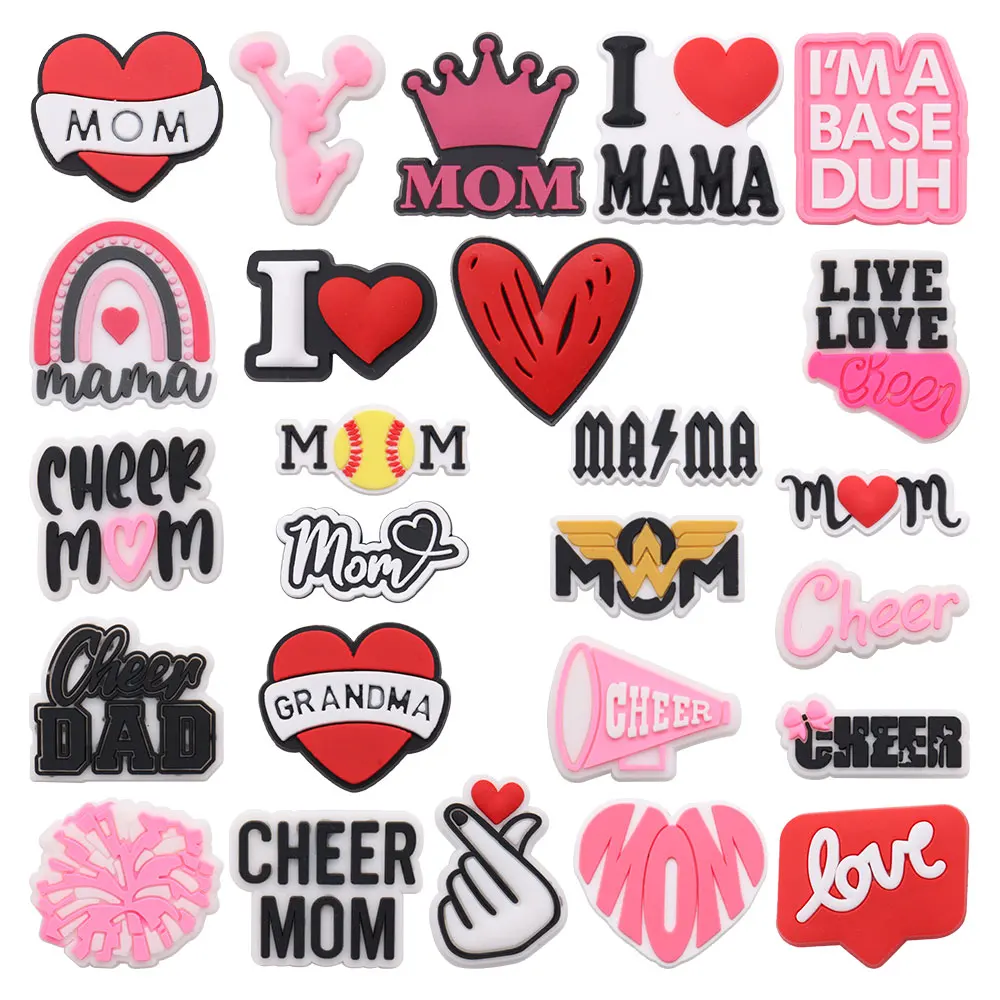 1-25Pcs Cheer Mom Grandma Garden Shoe Buckle Charms I Love Mama Woman Decorations DIY Best Mother's Day Gifts