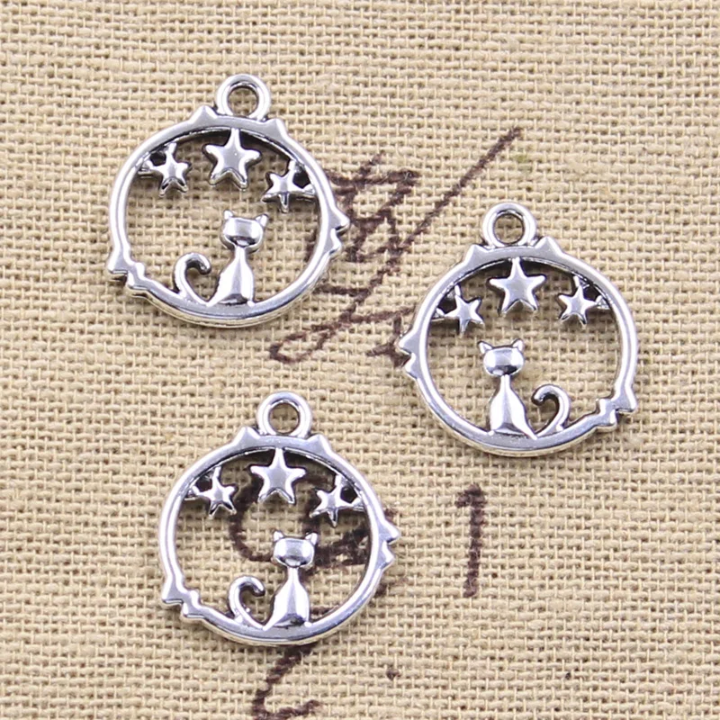 20pcs Charms Star Cat 18x16mm Antique Silver Color Pendants DIY Crafts Making Findings Handmade Tibetan Jewelry  Read more