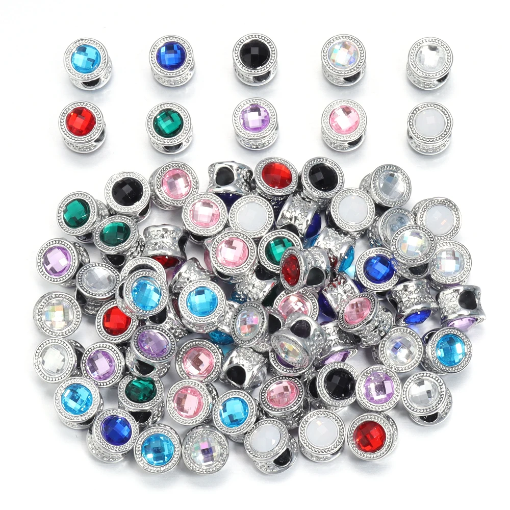 10pcs/Lot Color Alloy Rhinestone Spacer Beads Large Hole Barrel Bead for Jewelry Making DIY Charms Bracelet Hair Beads Accessory