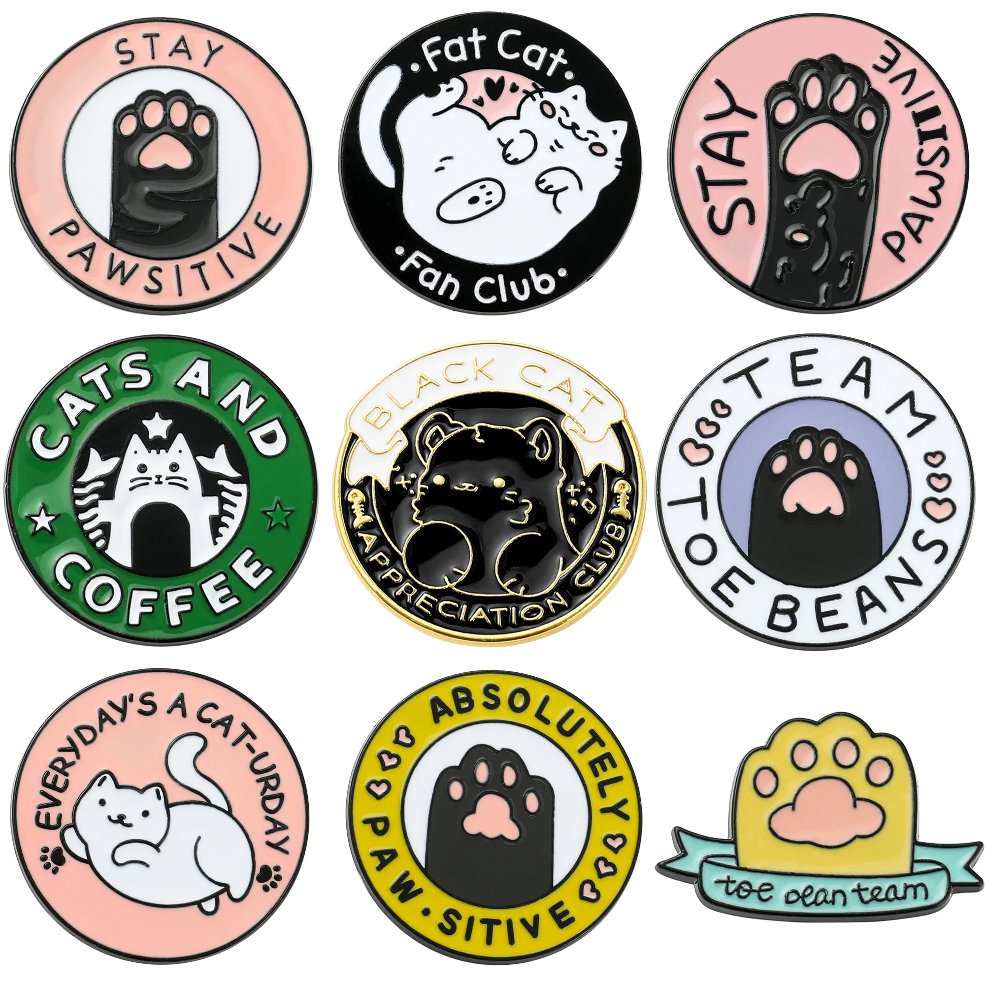 Cats Club Enamel Pin Cat Planet Moon Cafe Paw Badge Custom Kitten Brooches Lapel pin Jeans shirt Bag Cute Animal Jewelry Gift