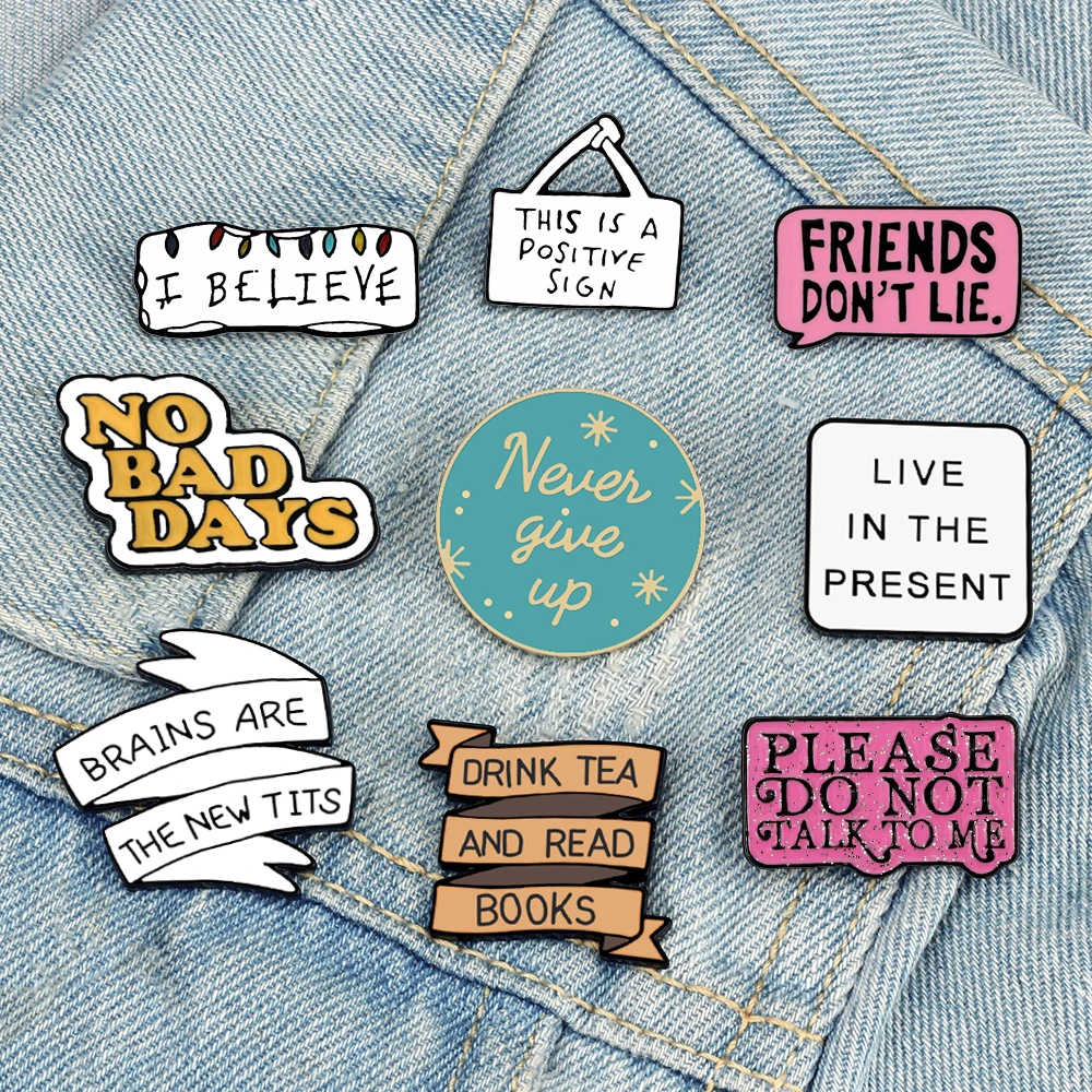 Quote Funny Enamel Pins Live Life Happy Brooches Lapel Pin Power Letter Custom Shirt Bag Motivational Badge Friends Gift Jewelry