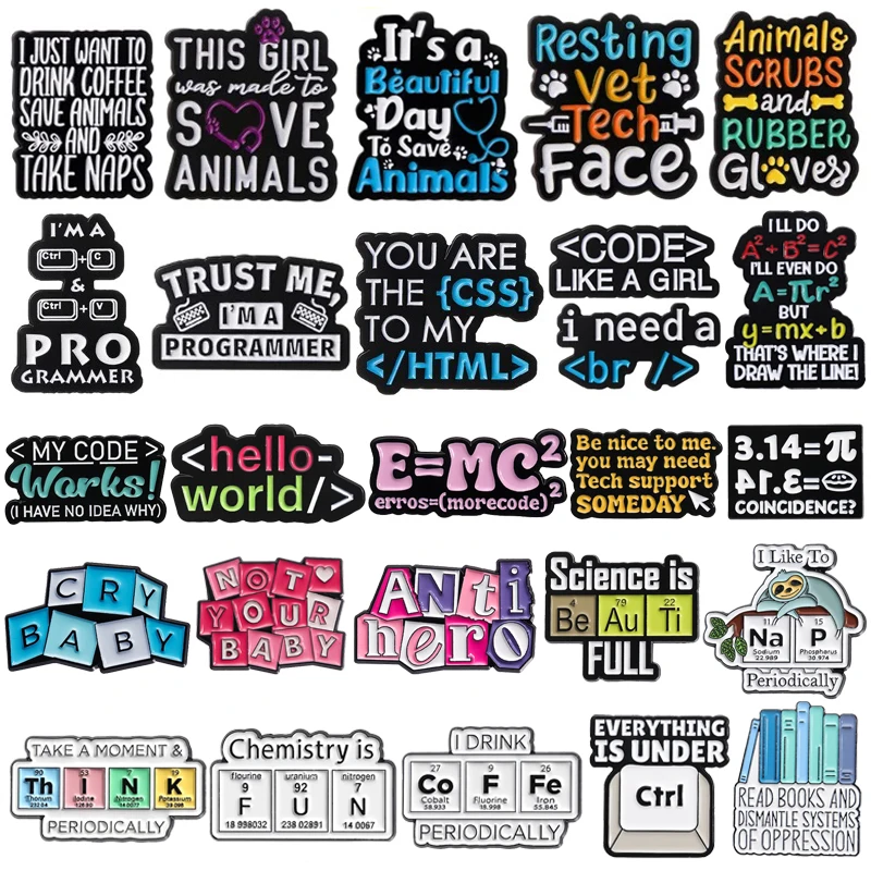 Creative Code Enamel Brooch Programmer Keyboard Chemistry Periodic Table Coffee Book E=MC Letters Metal Badge Lapel Pins Jewelry