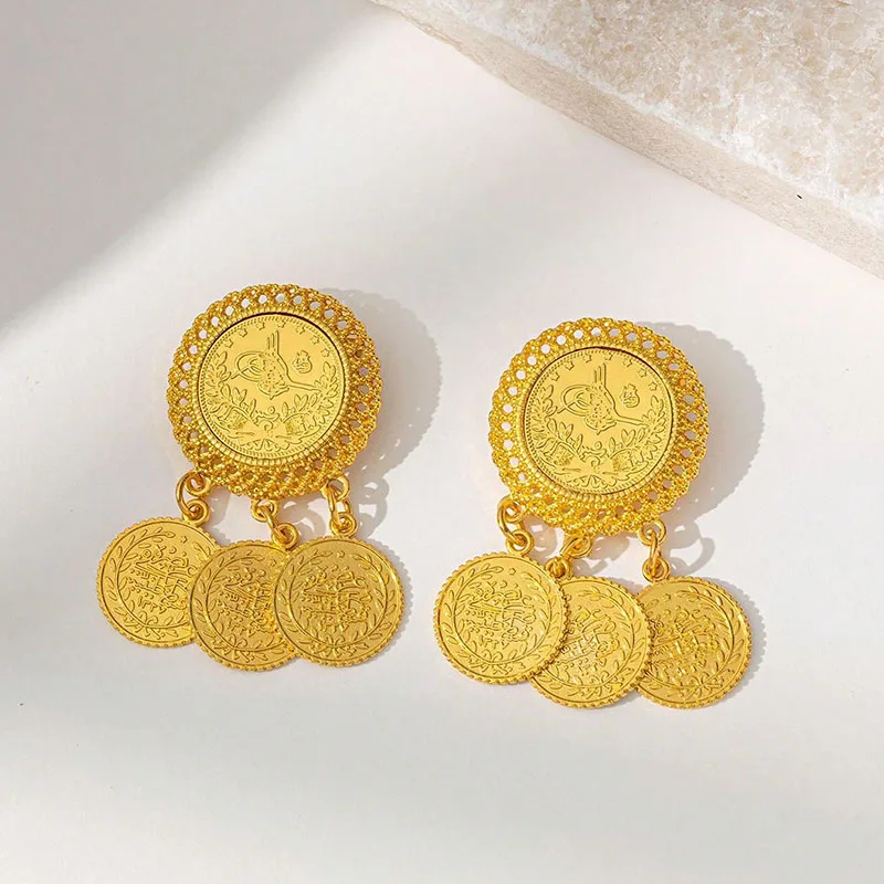DiCai New Women's Brooch Oman Kurdish Coin Gold-plated Pendant Wedding Jewelry Bride Gift Lapel Pin Accessories Cute Fashion  Read more