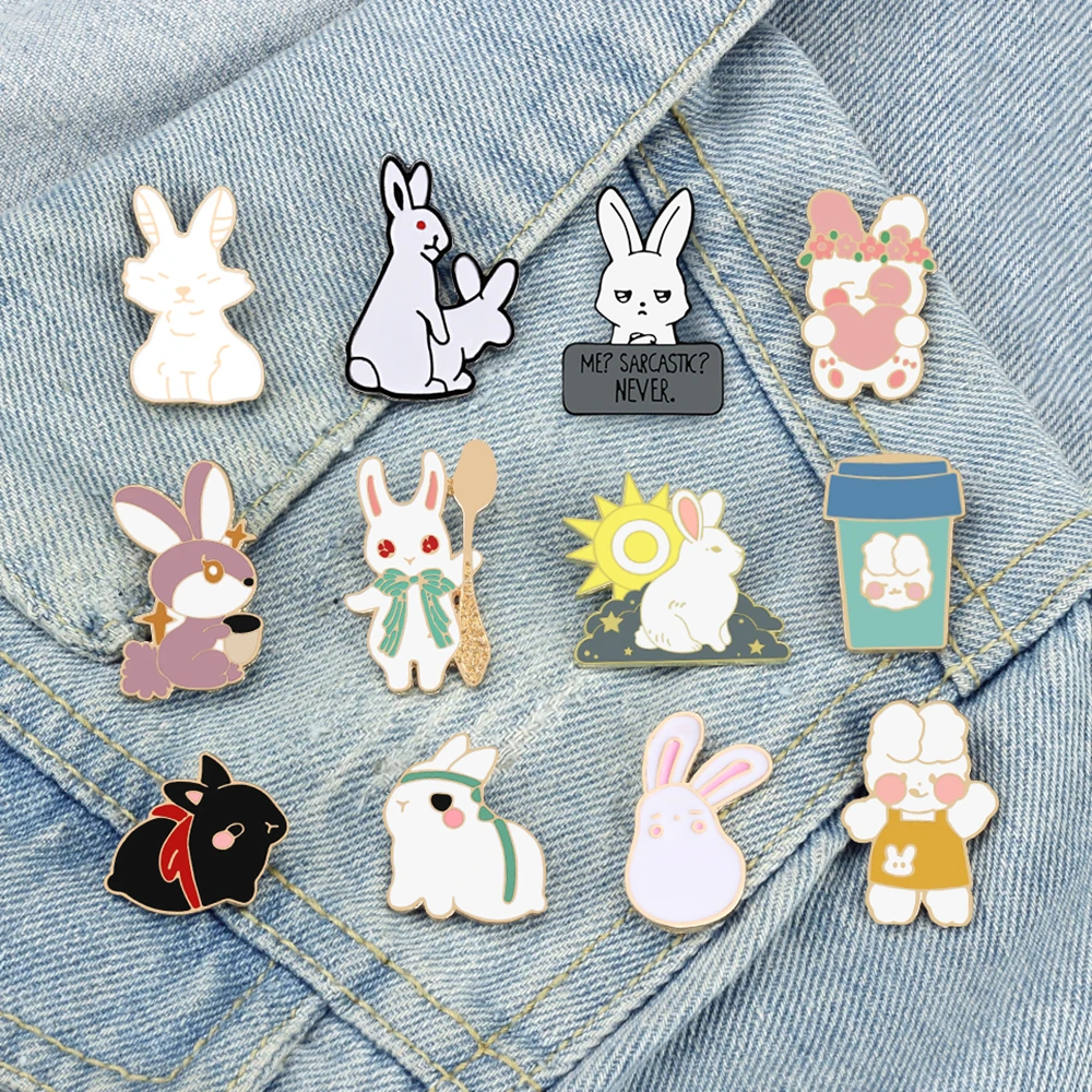 Animal Evil Rabbit Enamel Pins Cute Cartoon Bunny Brooches for Kids Girls Cool Feminist Backpack Lapel Badge Metal Jewelry Gifts